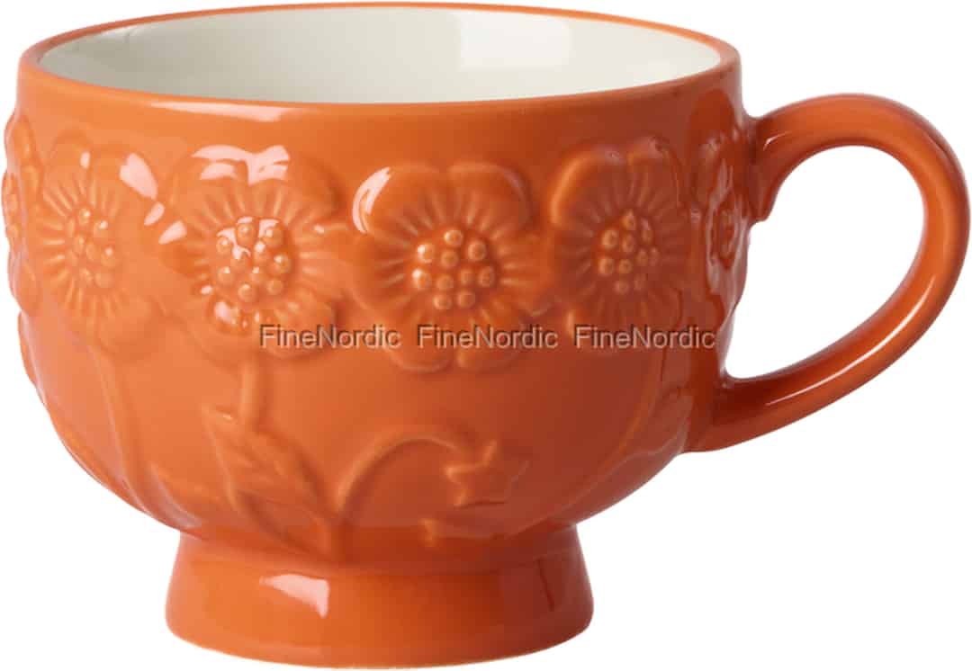 Rice Keramikbecher - Mit geprägten Blumen - Orange
