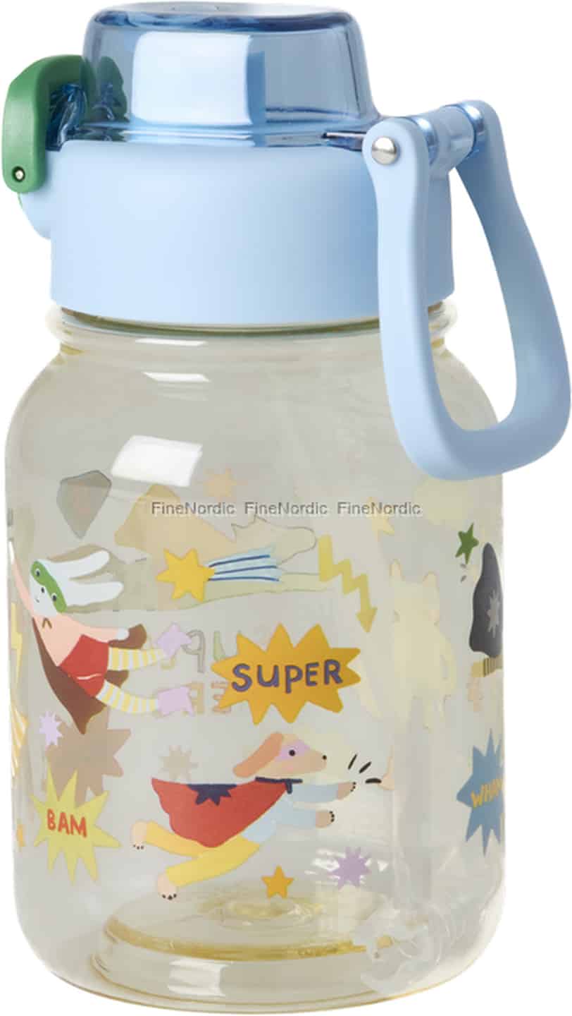 Machen Sie das Trinken zu einem aufregenden Teil des Tages Ihres Kindes mit der „Hero“-Trinkflasche von Rice. Diese bezaubernde Flasche ist mehr als nur ein Getränkebehälter; sie ist ein treuer Begleiter für jede Mission. Der transparente Körper ist mit einem ganzen Universum farbenfroher Superhelden verziert, von Hunden mit Umhängen bis hin zu fliegenden Freunden, die in den Pausen und bei Parkbesuchen zu endlosen Geschichten inspirieren. Der einfach zu bedienende Klappverschluss mit Strohhalm und der praktische Tragegriff erleichtern die Handhabung für kleine Hände und fördern die Selbstständigkeit.