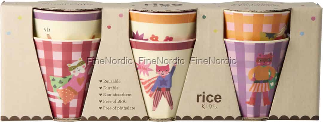 Rice ist dafür bekannt, Freude und Farbe ins Zuhause zu bringen, und dieses Set der „Hero“-Becher ist ein perfektes Beispiel für den verspielten Geist der Marke. Jeder der sechs Becher ist eine Leinwand für Abenteuer, mit bezaubernden tierischen Superhelden vor dem Hintergrund von lebhaften Karos und fröhlichen Unifarben. Vom Einhorn, das über ein Vichy-Feld saust, bis zur Katze, die „BAM!“ ruft – die Designs sind darauf ausgelegt, dein Kind zu begeistern und zu fesseln und jede Mahlzeit ein wenig magischer zu machen.