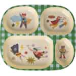 Bringe mit diesem wunderbar fantasievollen Teller von Rice eine Prise Superhelden-Spaß zum Frühstück, Mittag- und Abendessen. Jedes Fach zeigt ein anderes heldenhaftes Tier, das bereit ist, loszufliegen und deinen kleinen Schatz anzufeuern. Der fröhliche grüne Vichy-Rand rahmt die Szene ein und schafft eine verspielte Kulisse für jede Mahlzeit. Es ist mehr als nur ein Teller; es ist eine Einladung für dein Kind, Teil einer Super-Truppe zu werden und das Essen Tag für Tag in eine bezaubernde Geschichte zu verwandeln, deren Teil es sein kann.