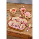 Aus der kreativen Welt von Rice kommt ein Teller, der mehr kann, als nur Essen zu halten; er erzählt eine Geschichte. Dieser wundervolle Melaminteller ist eine Leinwand für Abenteuer, auf der ein maskiertes Einhorn „OHLALA“ ruft und ein mutiger Hase mit einem „BAM!“ in Aktion tritt. Die sanfte Farbpalette in Rosa und Creme bildet einen fröhlichen Hintergrund für die lebendigen, skurrilen Illustrationen, die das Herz Ihres Kindes im Sturm erobern und es zum Lächeln bringen werden. Es ist eine Hommage an den Alltagshelden in jedem kleinen Schatz.