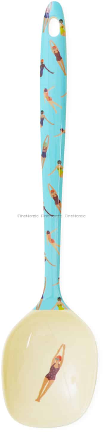 Tauchen Sie ein in die entzückende Welt von Rice mit dem „Retro Swimster“-Kochlöffel. Dieses Stück ist eine Feier der einfachen Freuden des Lebens und fängt die Essenz sonnenverwöhnter Nachmittage und der erfrischenden Kühle des Wassers ein. Der glänzende Melamin-Griff in einem wunderschönen Schwimmbadblau ist mit charmanten Figuren in klassischen Schwimmposen übersät, von denen jede eine kleine Geschichte unbeschwerter Muße erzählt. Die kontrastierende, zartgelbe Laffe zeigt einen einzelnen Turmspringer, der in einem Moment anmutiger Erwartung verharrt. Es ist ein Design, das nicht nur Speisen serviert, sondern auch glückliche Erinnerungen und ein wunderbares Gefühl von Nostalgie.