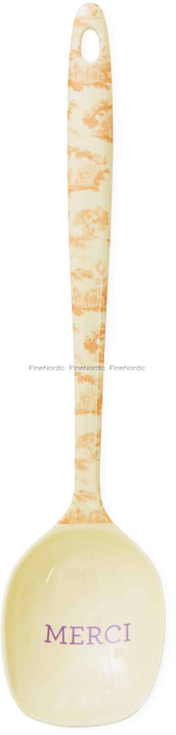 Lassen Sie sich vom Kochlöffel 'Glory Days' von Rice in eine sonnendurchflutete Küche auf dem französischen Land entführen. Das zarte, orangefarbene Toile-Muster auf dem cremefarbenen Griff erzählt eine Geschichte von pastoralen Landschaften und einfacheren Zeiten und bringt einen erzählerischen Charme in Ihr Zuhause. Jedes Detail, von der glänzenden Oberfläche bis zum süßen 'MERCI' in der Schale, ist darauf ausgelegt, im Alltag ein wenig Freude zu entfachen. Er ist mehr als nur ein Kochlöffel; er ist eine kleine Feier der Schönheit im Herzen Ihres Zuhauses.