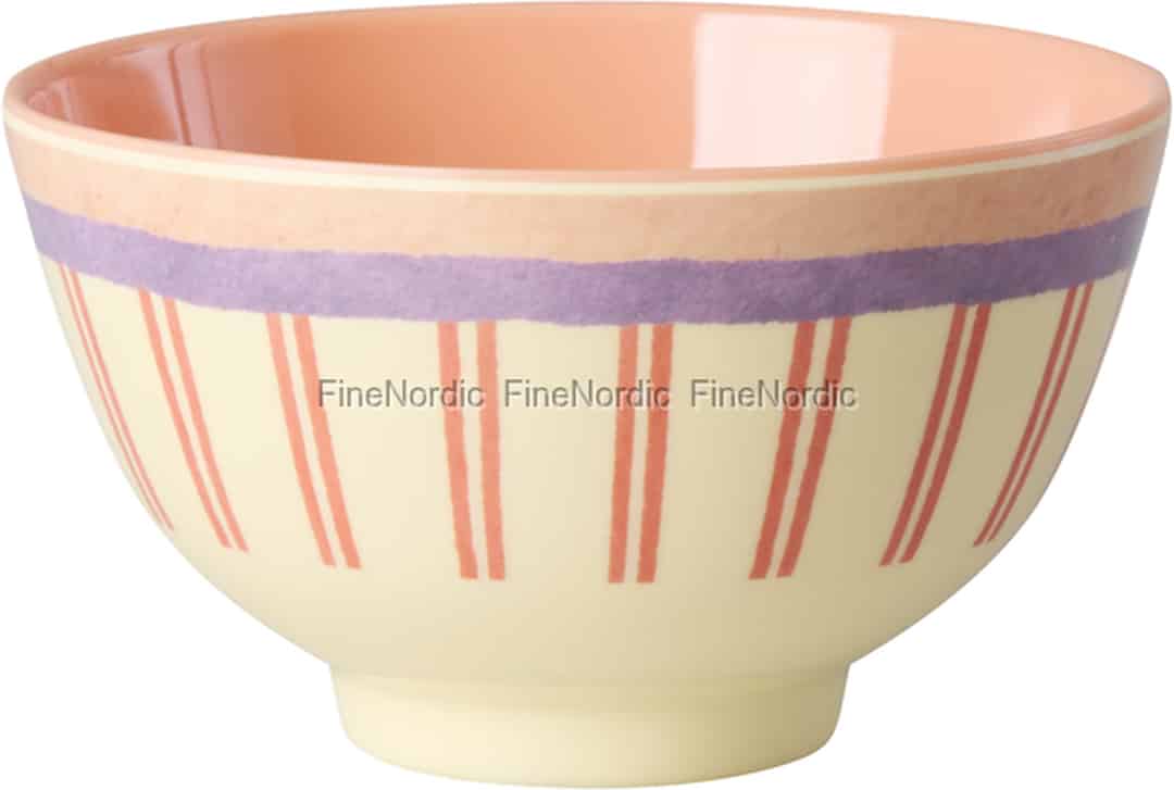 Rice ist bekannt dafür, Farbe und Freude ins Zuhause zu bringen, und die 'Stripey Love'-Schale ist ein perfekter Ausdruck dieser fröhlichen Philosophie. Jedes Detail, vom glänzenden, pfirsich-rosafarbenen Inneren, das sich warm und einladend anfühlt, bis hin zur aquarellartigen Qualität der lavendel- und rosafarbenen Streifen, ist darauf ausgelegt, zu begeistern. Es ist ein Stück, das sich sowohl nostalgisch als auch wunderbar modern anfühlt und eine einfache Schale in ein kleines Kunstwerk verwandelt, das Ihr Küchenregal erhellt.