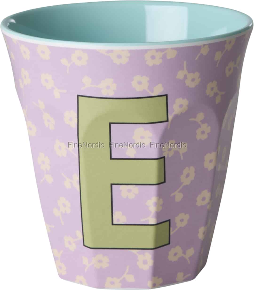 Bringen Sie mit diesem entzückenden Buchstabenbecher von Rice einen kleinen Ausbruch persönlicher Freude auf Ihren Tisch. Der zarte, fliederfarbene Hintergrund, übersät mit süßen kleinen Blümchen, erschafft eine Szene, die an eine sanfte Frühlingswiese erinnert. Ihr Anfangsbuchstabe, das 'E', hebt sich in einem beruhigenden Grün ab und lässt jeden Schluck zu etwas Besonderem und Einzigartigem werden. Die Überraschung des leuchtend türkisfarbenen Inneren fügt eine zusätzliche Ebene verspielten Charms hinzu, die für das Design-Ethos von Rice charakteristisch ist und einen einfachen Becher in eine kleine Quelle täglichen Glücks verwandelt.