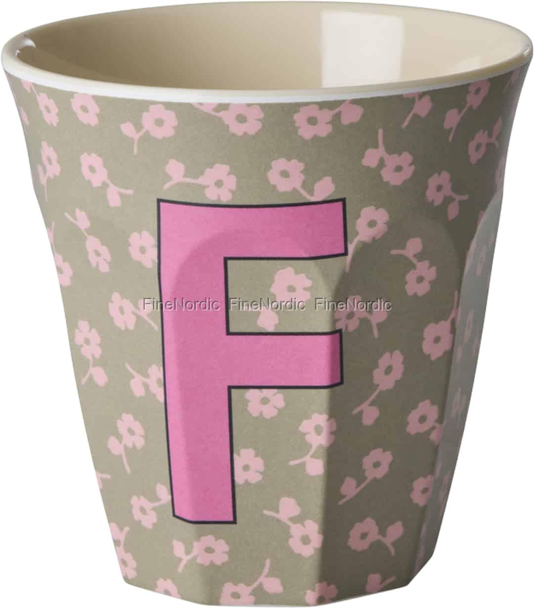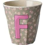 Bringe mit diesem wunderschönen Buchstabenbecher von Rice ein kleines Stück personalisierte Freude in dein Zuhause. Die dänische Marke ist dafür bekannt, Alltagsgegenständen Farbe und Fröhlichkeit einzuhauchen, und dieses Stück ist keine Ausnahme. Ein kräftiger, leuchtend rosa Buchstabe 'F' hebt sich von einem Hintergrund aus zarten rosa Blüten auf einem sanften, taupe-grünen Grund ab und schafft so einen Look, der sowohl verspielt als auch wunderbar stilvoll ist. Das glatte, cremefarbene Innere sorgt für einen schönen Kontrast und lässt jeden Schluck zu etwas Besonderem werden.
