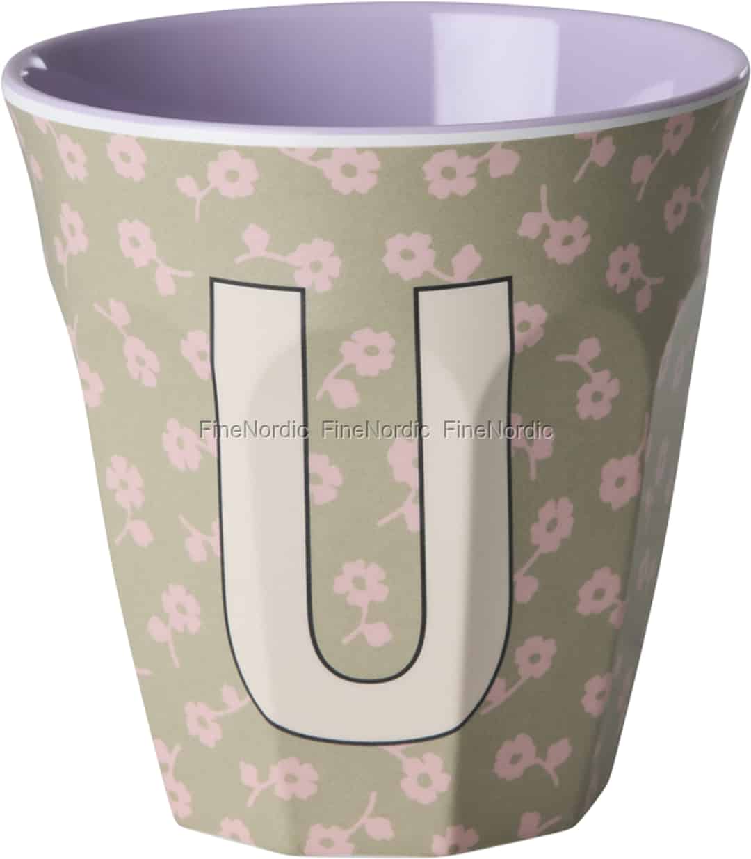 Finde deinen Anfangsbuchstaben inmitten eines Feldes aus zarten rosa Blüten. Dieser bezaubernde Melaminbecher von Rice verleiht deinen täglichen Schlucken eine persönliche Note und macht jedes Getränk zu etwas ganz Besonderem. Das sanfte Salbeigrün und das fliederfarbene Innere schaffen eine entzückende Kombination.