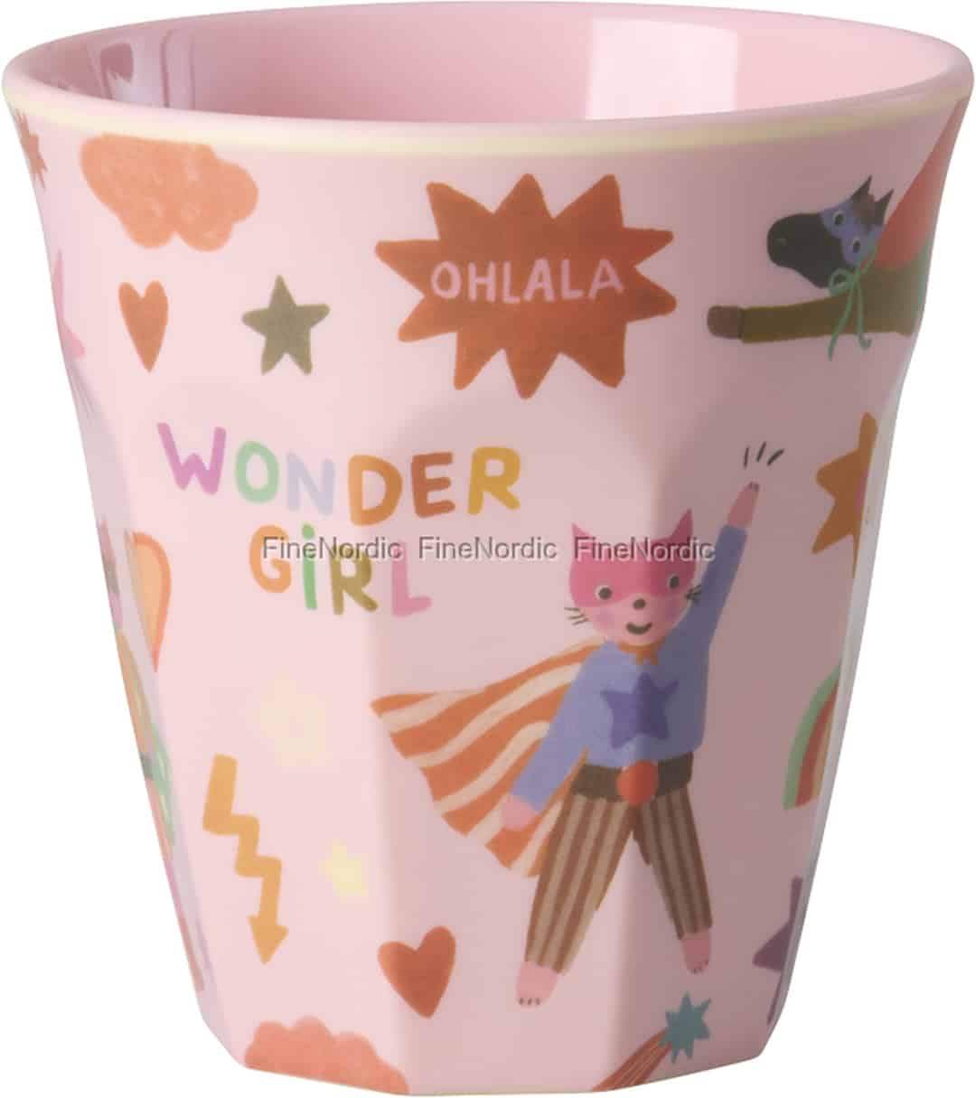 Beobachte, wie die Fantasie deines Kindes mit jedem Schluck aus diesem bezaubernden Becher von Rice beflügelt wird. Verziert mit einem verspielten 'Wonder Girl'-Aufdruck, verwandelt er gewöhnliche Mahlzeiten und Snackpausen in die charmantesten Alltagsabenteuer.
