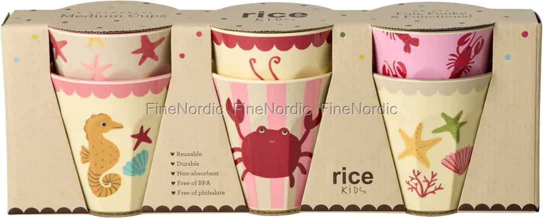 Lassen Sie die lebendige Welt von Rice einen Hauch von Küstencharme in Ihr Zuhause bringen. Dieses entzückende Set aus sechs mittelgroßen Bechern ist eine Hommage an Farbe und Charakter, entworfen, um alltägliche Momente besonders zu machen. Jeder Becher erzählt seine eigene kleine Geschichte vom Meer, geschmückt mit verspielten Hummern, freundlichen Seesternen und anderen bezaubernden Kreaturen, die das Herz Ihres Kindes erobern werden. Das hochwertige Melamin fühlt sich glatt und stabil an, eine beruhigende Präsenz bei turbulenten Familienessen oder sonnigen Gartenfesten.