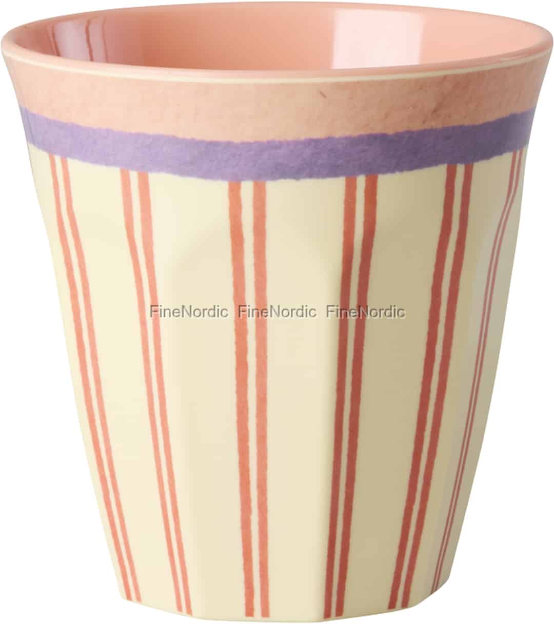 Rice ist bekannt dafür, Farbe und Freude ins Zuhause zu bringen, und der Becher 'Stripey Love' ist ein perfekter Ausdruck dieser Philosophie. Die charmante Kombination aus korallroten und cremefarbenen Streifen, akzentuiert durch ein kräftiges lila Band und ein zartrosa Inneres, schafft ein Design, das sowohl verspielt als auch stilvoll ist. Es ist ein Stück, das nicht nur Ihr Getränk hält, sondern auch ein kleines bisschen Glück, entworfen, um Sie bei jeder Benutzung zum Lächeln zu bringen. Das langlebige Melamin fühlt sich solide und glatt in Ihrer Hand an, ein zuverlässiger Begleiter für den Alltag.