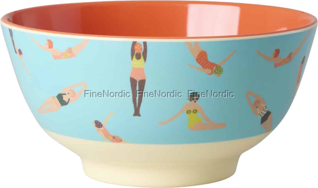 Stellen Sie sich einen sonnenverwöhnten Nachmittag am Wasser vor. Diese entzückende Melaminschale von Rice fängt mit ihrem verspielten Retro-Schwimmerinnen-Motiv diesen unbeschwerten Geist ein. Sie ist eine fröhliche Einladung, die einfachen, glücklichen Momente des Sommers zu zelebrieren – von Ihrer Küche bis in den Garten.