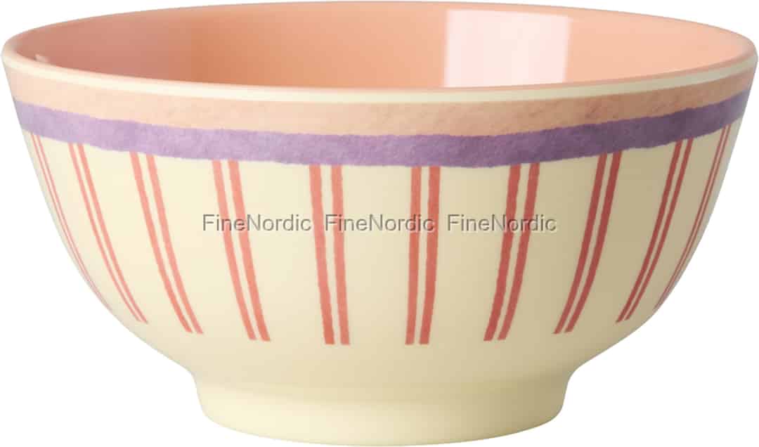 Stellen Sie sich Ihren Tisch vor, lebendig vor Farbe und Lachen. Diese entzückende Melaminschale von Rice, mit ihren verspielten Streifen und dem warmen pfirsichfarbenen Inneren, wurde entworfen, um einen Hauch von Freude in Ihren Alltag zu bringen – vom morgendlichen Müsli bis zum Mittagessen im Garten.