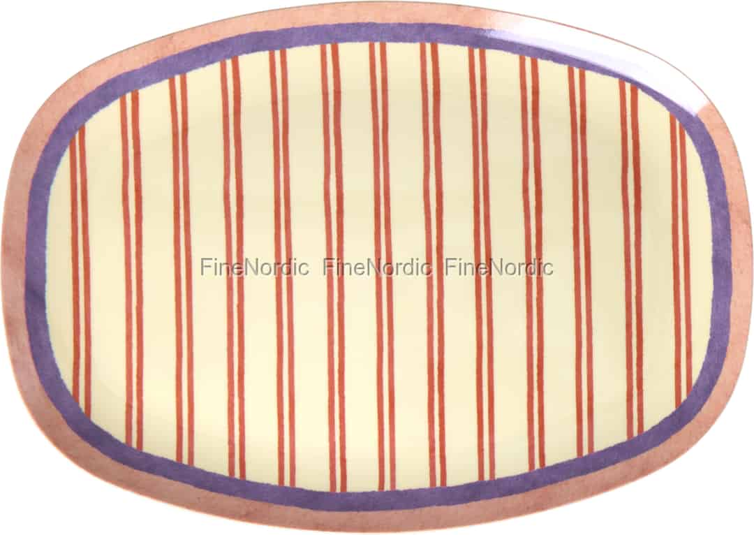 Träumen Sie von sonnigen Nachmittagen und fröhlichen Zusammenkünften. Dieser entzückende Teller mit seinen heiteren roten Streifen und der Optik wie von Hand bemalt, ist dafür geschaffen, ein kleines bisschen mehr Glück auf Ihren Tisch zu zaubern – ganz gleich, ob Sie drinnen speisen oder ein Picknick im Garten genießen.