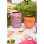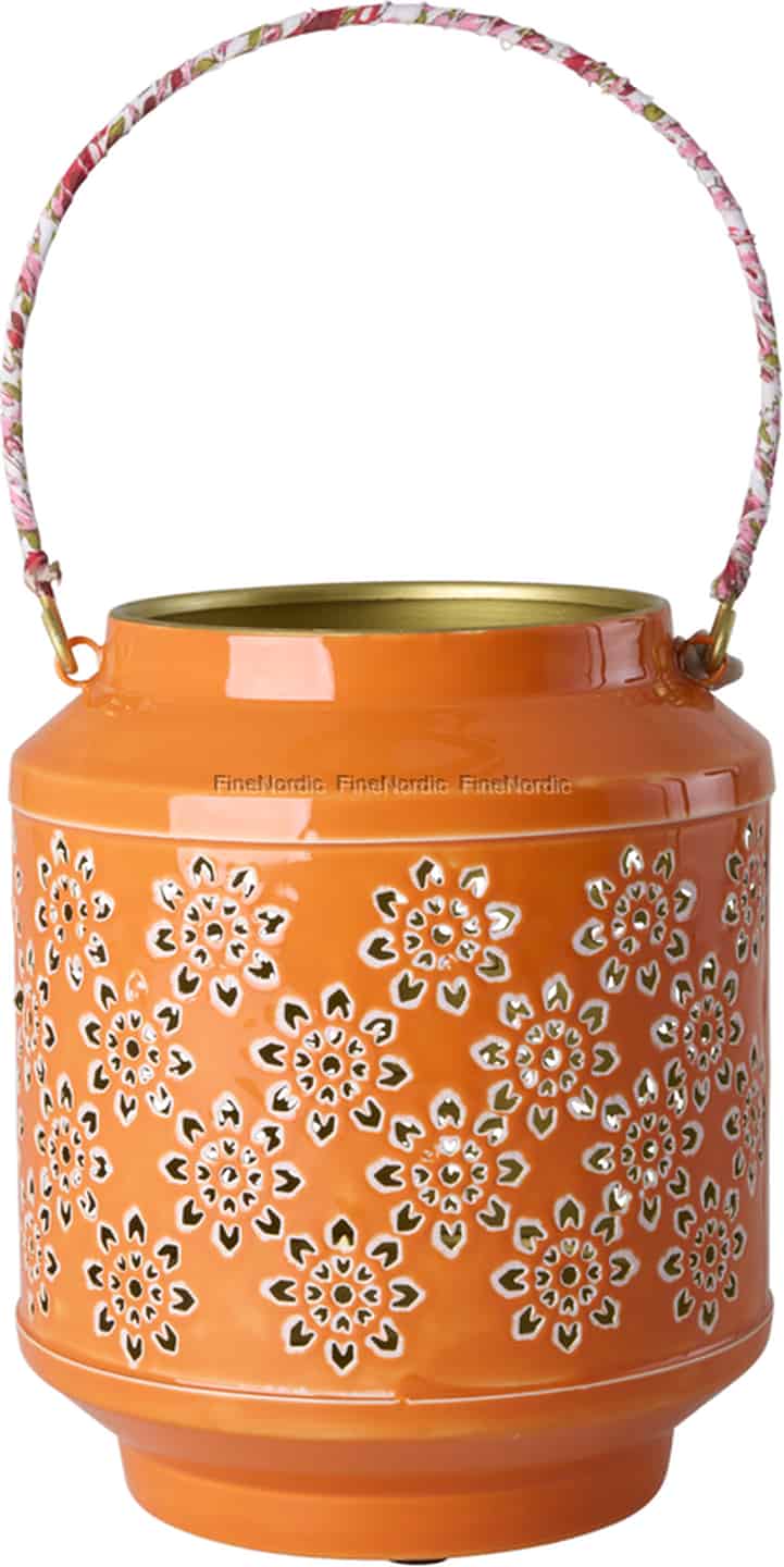 Stellen Sie sich vor, wie Ihre Terrasse in der Abenddämmerung in ein sanftes, gemustertes Licht getaucht wird. Diese wunderschöne Metalllaterne von Rice in einem fröhlichen, glänzenden Orangeton verwandelt jeden Abend in einen zauberhaften Anlass.
