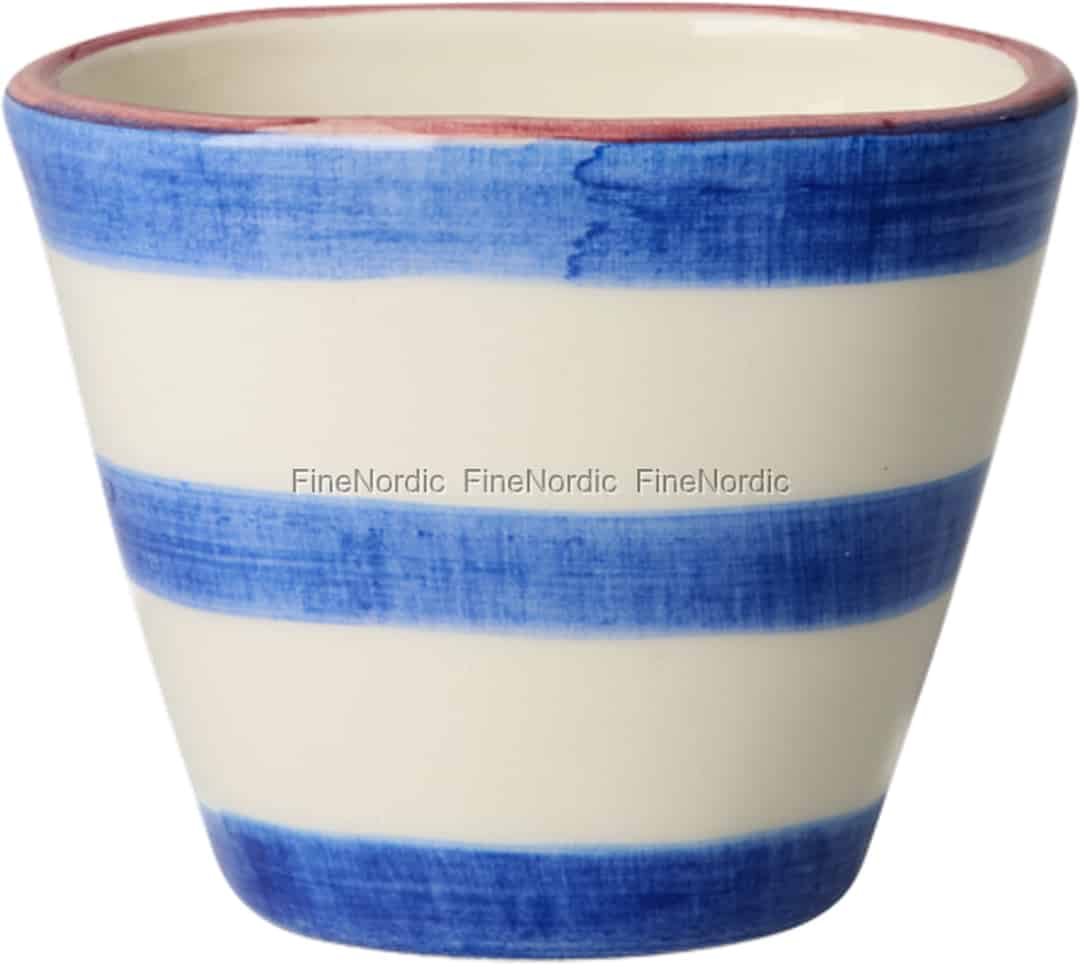 Es liegt eine besondere Wärme in Dingen, die von Menschenhand geschaffen wurden. Diese bezaubernde Espressotasse von Rice verkörpert diesen Geist und verwandelt eine Kaffeepause in einen Moment der Freude. Spüren Sie die glatte Keramik, während Sie die kräftigen blauen Streifen nachfahren, von denen jeder die einzigartige Handschrift des Künstlerpinsels trägt. Der dezente rötlich-rosafarbene Rand fügt einen verspielten Hauch von Farbe hinzu, ein kleines Detail, das ein Lächeln hervorzaubert. Sie ist eine tägliche Erinnerung daran, die Freude in den kleinen Dingen zu finden.