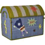 Verwandeln Sie das Schlaf- oder Spielzimmer Ihres Kindes mit diesem wundervollen Set aus drei Aufbewahrungshäusern von Rice in eine Basis für heldenhafte Taten. Handgefertigt mit Sorgfalt aus natürlichem Raffia, erzählt jede Truhe ihre eigene Geschichte durch leuchtende Farben und entzückende Applikationsdetails. Von einer mutigen Katze, die den Tag rettet, bis hin zu Helden, die über einen gestreiften Himmel schweben – diese Stücke sind nicht nur zum Aufbewahren, sondern auch zum Inspirieren gedacht. Die wundervolle Textur des geflochtenen Raffias verleiht ihrem Raum ein authentisches, handgefertigtes Gefühl und macht das Organisieren zu einer freudvollen Tätigkeit.