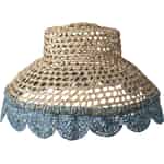 Rice Raffia-Lampenschirm - Hutform - Bestickter Wellenrand - Blau