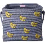 Aus dem Herzen Dänemarks bringt Ihnen Rice eine Aufbewahrungslösung, die zurücklächelt. Dieser wunderschöne quadratische Korb ist ein Zeugnis ihrer Philosophie der „Alltagsmagie“ und verbindet praktische Organisation mit unwiderstehlichem Charme. Er wird liebevoll aus natürlichem Raffia handgefertigt, was ihm eine wunderbar robuste und strukturierte Haptik verleiht. Das staubig-blaue Geflecht bildet einen beruhigenden Hintergrund für die verstreuten, fröhlich gestickten Bananen – jedes ein kleines Detail, das Freude entfacht und eine einfache Aufbewahrungslösung in ein dekoratives Element verwandelt, das Sie gerne zeigen werden.