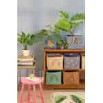 Stellen Sie sich diesen Korb in einem Spielzimmer vor, wie er mühelos farbenfrohes Spielzeug sammelt, oder neben Ihrem Lieblingssessel, wo er kuschelige Decken und Zeitschriften ordentlich aufbewahrt. Seine großzügige Größe von 30 x 30 x 25 cm macht ihn wunderbar vielseitig, während die starken, geflochtenen Griffe dafür sorgen, dass er leicht von Raum zu Raum getragen werden kann. Er ist mehr als nur ein Korb; er ist ein Stück funktionale Kunst, das hilft, ein Zuhause zu schaffen, das sowohl organisiert als auch voller Persönlichkeit ist.