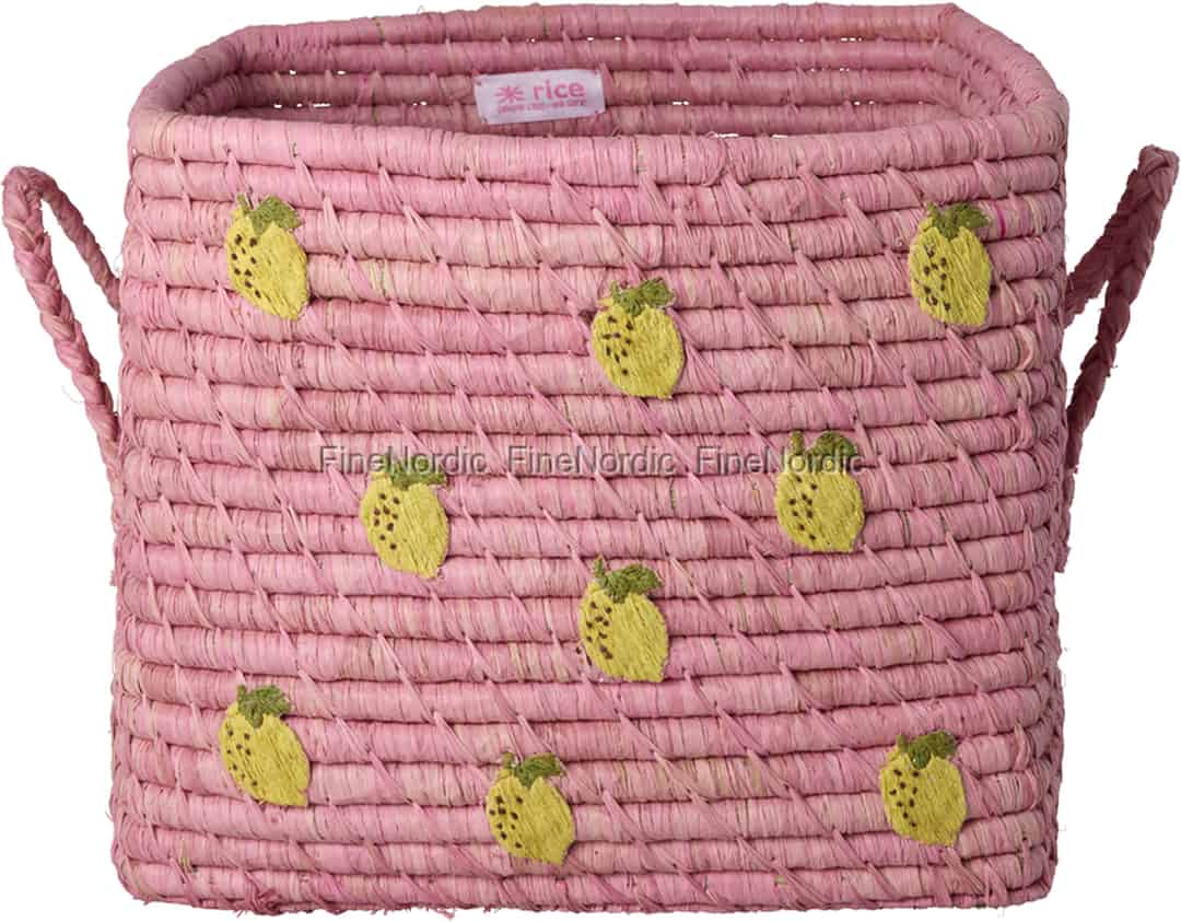 Entdecke das Herz dänischen Designs mit diesem wunderschönen Korb von Rice, einer Marke, die dafür gefeiert wird, Farbe und Freude ins Zuhause zu bringen. Jeder Korb wird liebevoll aus Raffia, einer natürlichen Palmfaser, handgefertigt, was ihm eine wunderbar haptische Qualität und ein einzigartiges, rustikales Finish verleiht. Die leuchtend pinke Farbe bringt Wärme und Energie, während die süßen, gestickten Zitronen, die über die Oberfläche verteilt sind, eine fröhliche, spritzige Persönlichkeit hinzufügen, die einfach unwiderstehlich ist.