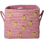 Stell dir vor, Aufräumen wird zu einem Moment purer Freude. Dieser bezaubernde Raffiakorb von Rice verwandelt die alltägliche Aufbewahrung in einen entzückenden Blickfang und bringt einen Spritzer leuchtendes Pink und sonnige Zitronenstickerei in jede Ecke deines Zuhauses.