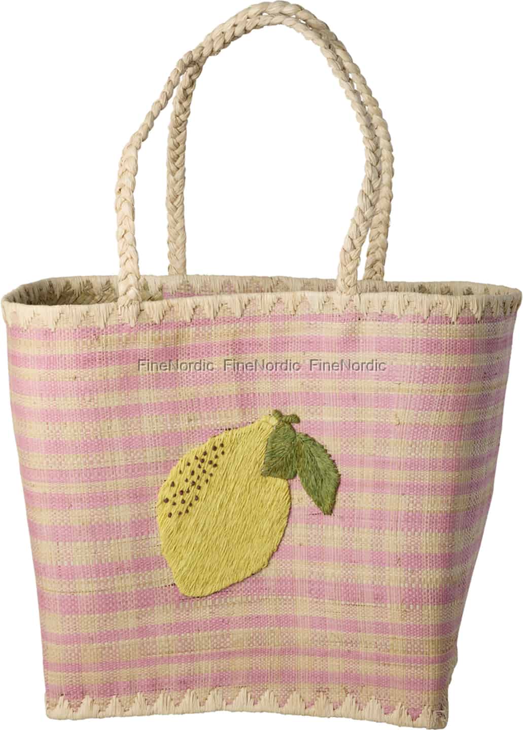 Rice Raffiatasche - Zitronenstickerei - Rosa - Groß