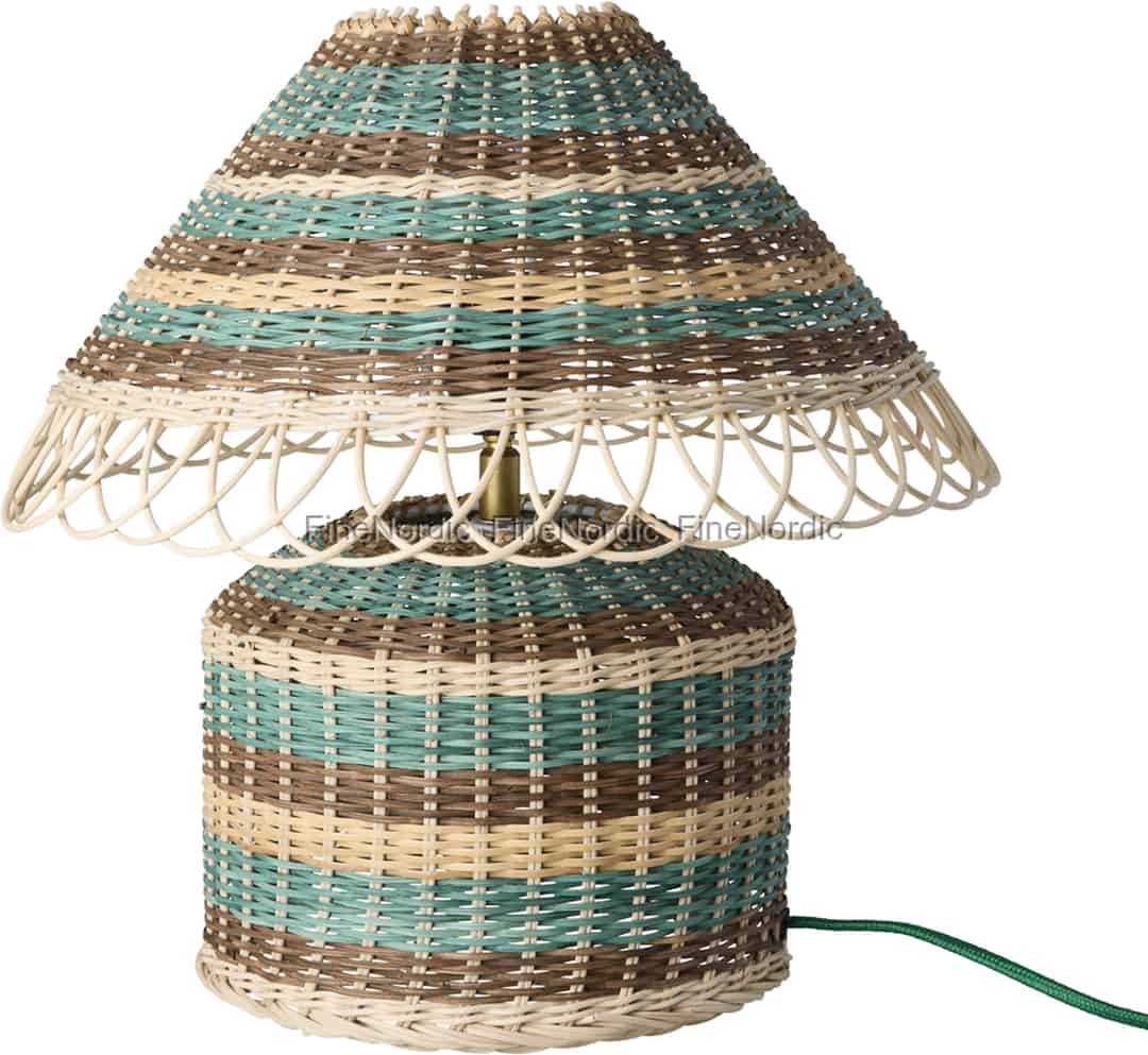 Rice Rattan Tischlampe - Bräunliche Streifen - E27-Fassung und 2-poliger Stecker - Niedrig