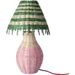 Stellen Sie sich ein sanftes, warmes Licht vor, das durch Streifen aus fröhlichem Rosa und leuchtendem Grün scheint. Diese wunderschöne Tischlampe von Rice ist mehr als nur eine Lichtquelle; sie ist ein handgefertigtes Stück Glück, das entworfen wurde, um Ihnen ein Lächeln ins Gesicht zu zaubern.