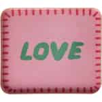 Bringen Sie mit diesem entzückenden Metalltablett von Rice einen Hauch von verspieltem Charme in Ihren Alltag. Sein fröhlicher Rosaton und die kühne „LOVE“-Botschaft zaubern Ihnen jedes Mal ein Lächeln ins Gesicht, wenn Sie es sehen.