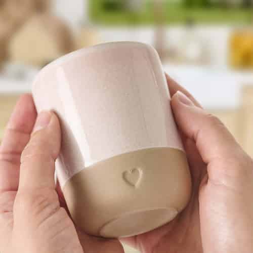 Ib Laursen Becher ohne Henkel - Herz - Matter brauner Ton mit hellrosa Rand