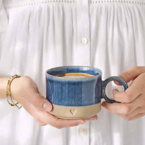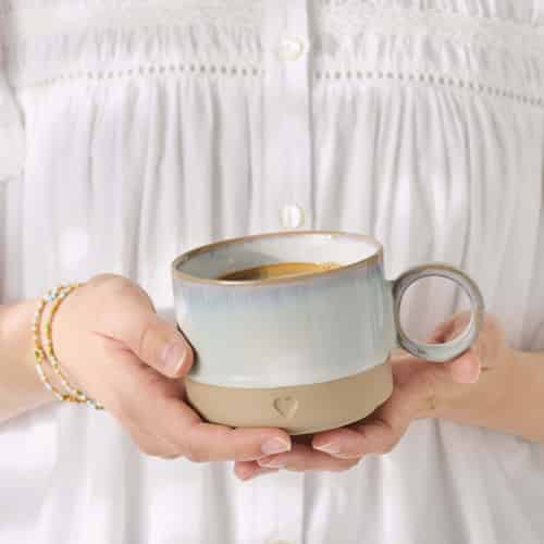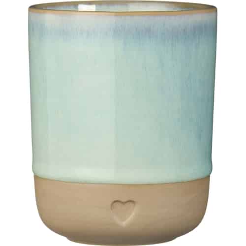 Ib Laursen Becher mit Henkel - Herz - Matter brauner Ton mit hellblauem Rand