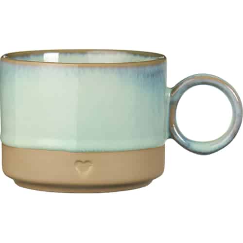 Ib Laursen Becher mit Henkel - Herz - Matter brauner Ton mit hellgrünem Rand