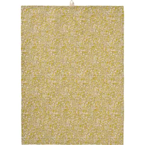 Ib Laursen Geschirrtuch "Rita" - Natur mit gelben, grünen und hellrosa Blumen