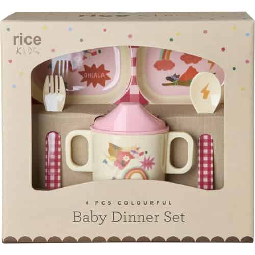 Rice Melamin Baby-Geschirrset in Geschenkbox "Hero" Rosa - 4-teilig