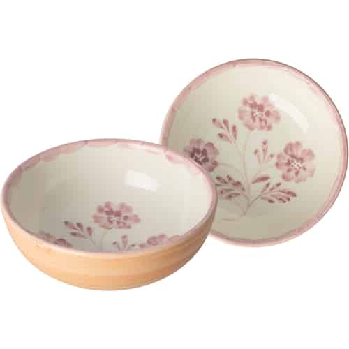 Rice Keramikschale - Handbemalte rosa Blumen - Orange