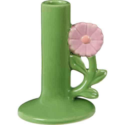 Ib Laursen Kerzenhalter - für 2,2 cm Kerze - Grün mit hellrosa Blume