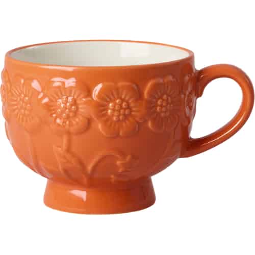 Rice Keramikbecher - Mit geprägten Blumen - Orange