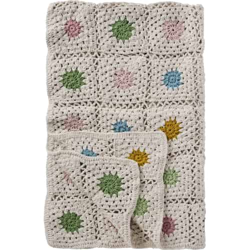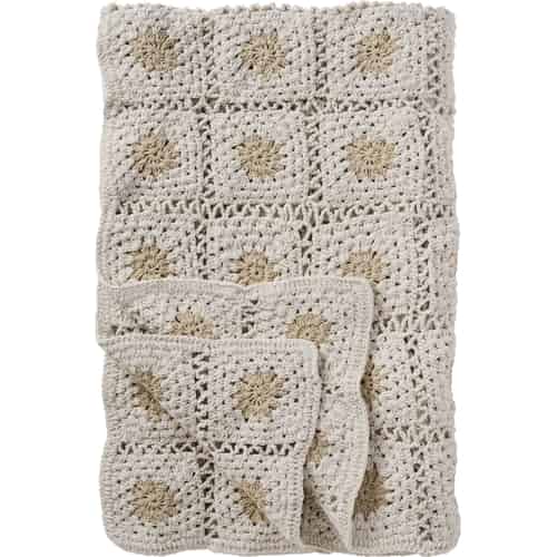 Ib Laursen Plaid - Gehäkelt - Creme - Naturfarbene Blumen 130 x 170 cm