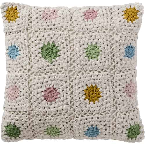 Ib Laursen Kissenhülle - Gehäkelt - Creme - Mehrfarbige Blumen, Rückseite cremefarbener Canvas 50 x 50 cm
